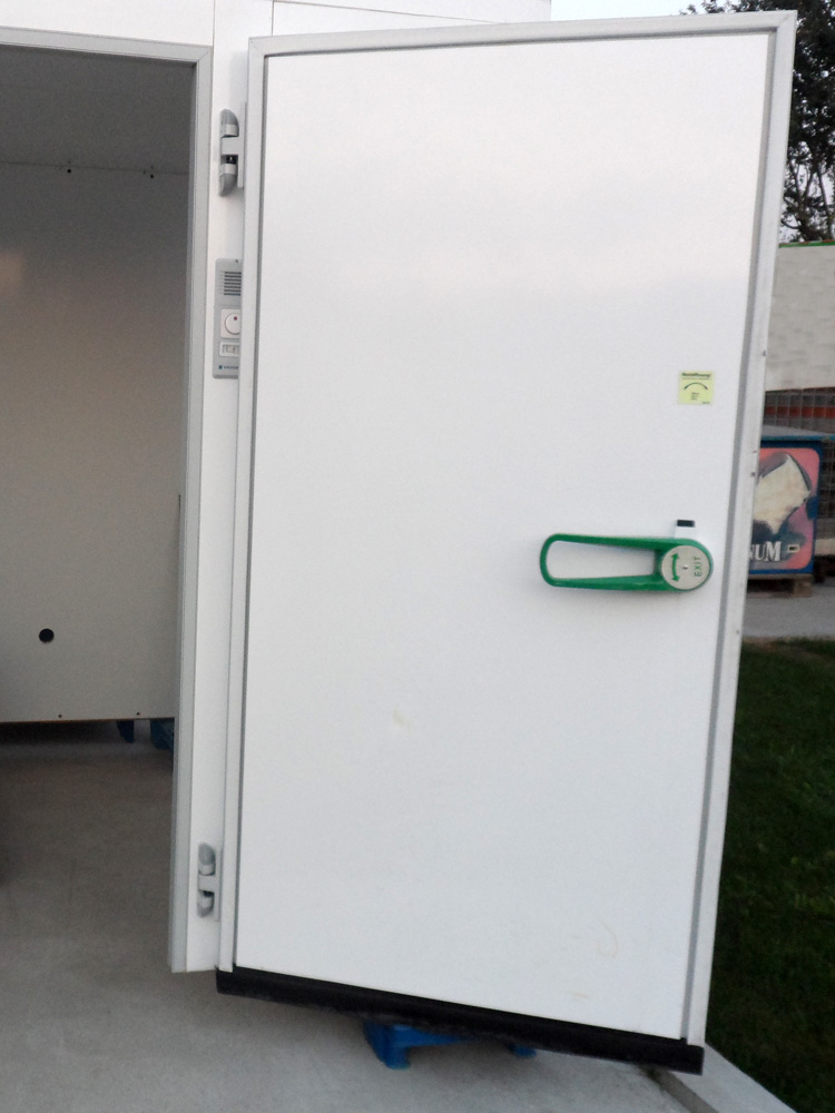 Camerele frigorifice pot fi dotate cu diferite tipuri de usi, carora li se pot monta clante de diverse tipuri, in functie de nevoile de siguranta.